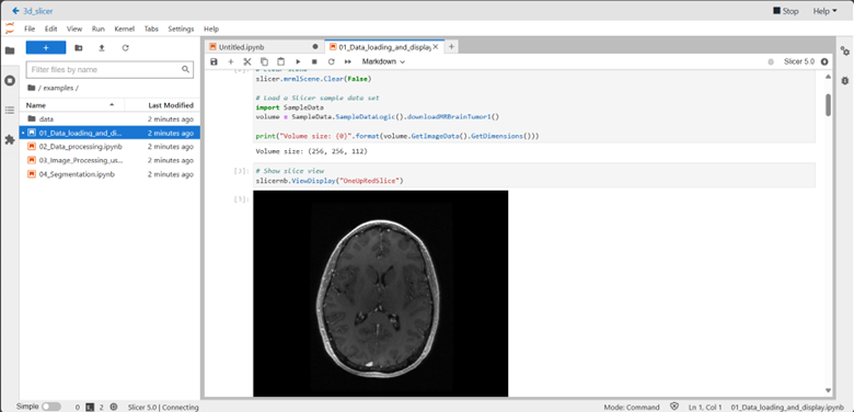 • Able to see some example notebooks showing the functions of the 3D slicer