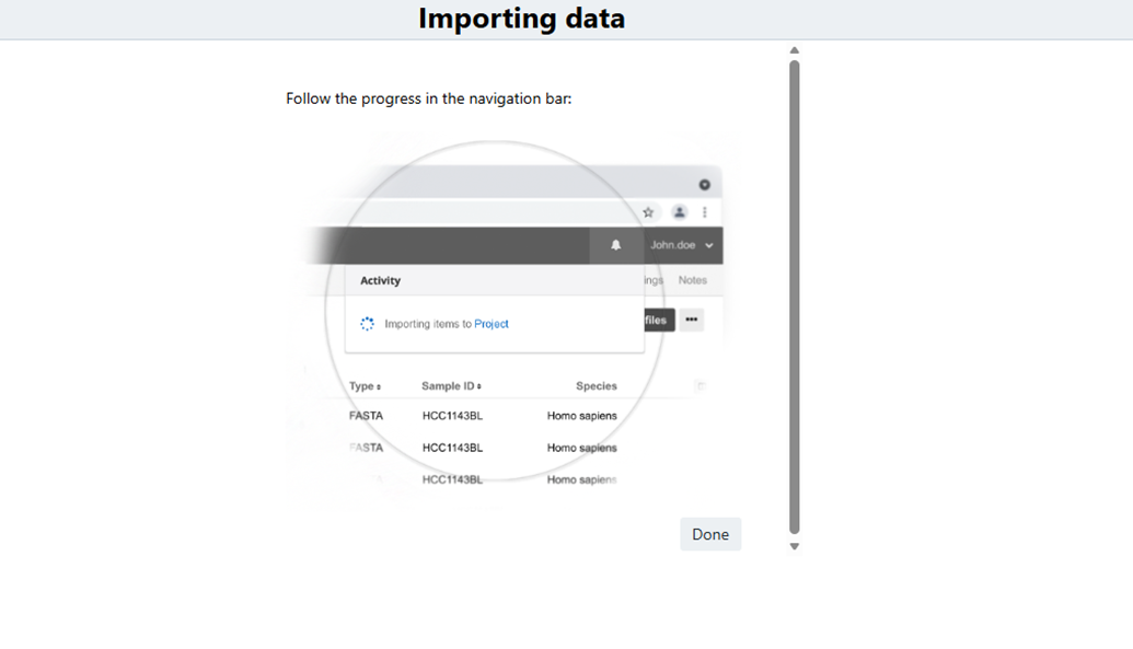 - Review the import context preloaded from Gen3 BioData Catalyst.